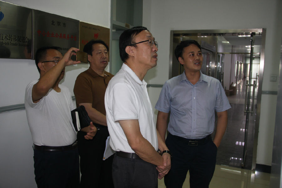 2016年8月24日,陕西省榆林市科技局局长谢军、副局长冯维林、榆林市信息所所长乔东等领导在科技部农村司张剑同志的陪同下前来中心调研科技成果评价工作。